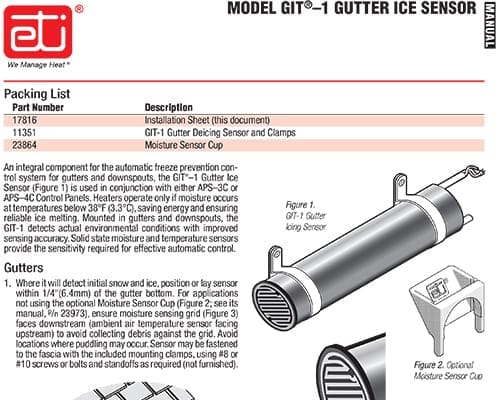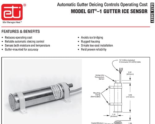 R – Non. Les contrôleurs GF-Pro et PD-Pro nécessitent au moins un capteur supplémentaire pour fonctionner dans une application de déneigement automatique. Pour les applications de déverglaçage des toits, il est possible de choisir entre les capteurs GIT-1 et CIT-1, mais pour encore plus de précision et de contrôle, il est préférable de combiner les deux.