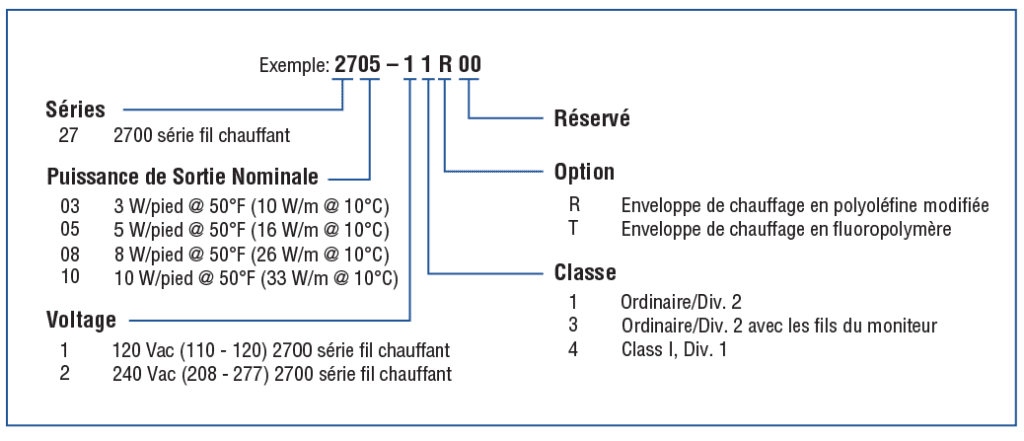 (Exemple de câble chauffant de la série 2700 illustré)