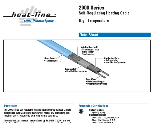 • 2000 Series High Temperature Self-Regulating Heating Cable Specification