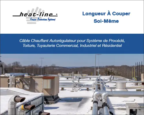 Heat-Line propose une gamme complète de câbles chauffants autorégulants de qualité industrielle et commerciale. Ces câbles chauffants sont disponibles en bobines de 1000 pieds (305 mètres) ou coupés sur mesure pour répondre à des exigences spécifiques en matière de longueur. Pour compléter ces câbles chauffants, Heat-Line propose une large gamme de kits de raccordement électrique et de contrôle de terminaison.