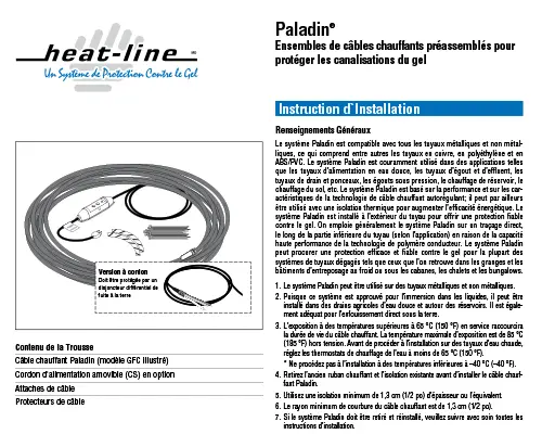 R – Le système de câble chauffant Paladin fabriqué par Heat-Line est disponible directement auprès de Heat-Line ou de l’un de nos distributeurs de produits. Pour obtenir une liste des distributeurs de produits Heat-Line au Canada et aux États-Unis, veuillez contacter Heat-Line directement au numéro gratuit suivant:800-584-4944 ou en français 844-584-5474.
